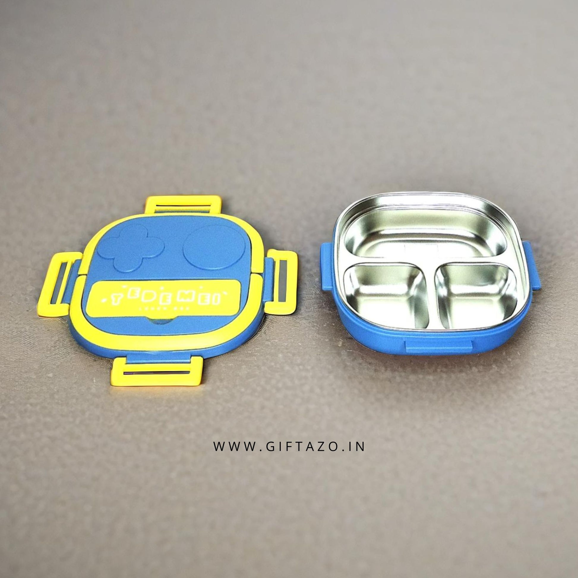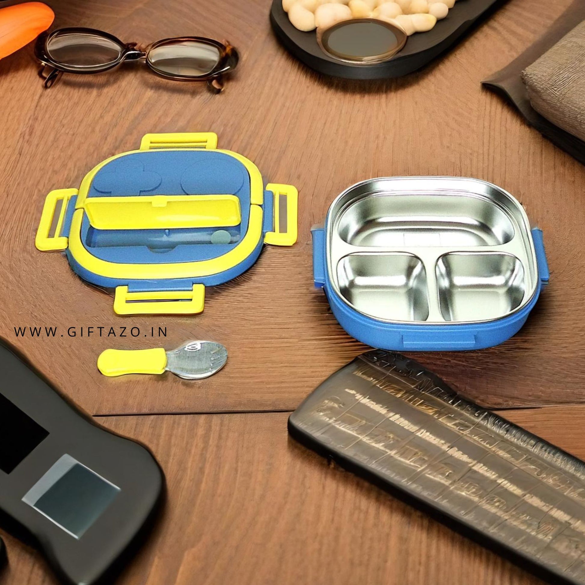 High quality stainless steel leakage-proof 550ml lunch box ideal for school kids. Includes 3 grid stainless steel compartment made with 304 grade stainless steel which is easy for daily cleaning. It comes with a spoon compartment on the top. The buckle design on all sides is convenient for kids to open and close.